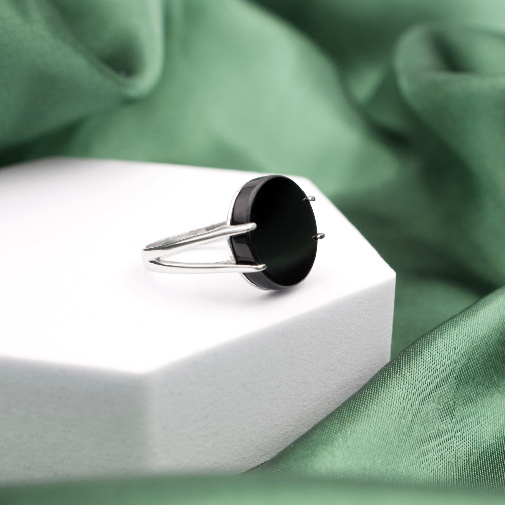 خاتم فضة رجالي عيار 925 بحجر الأونيكس الأسود الفاخر