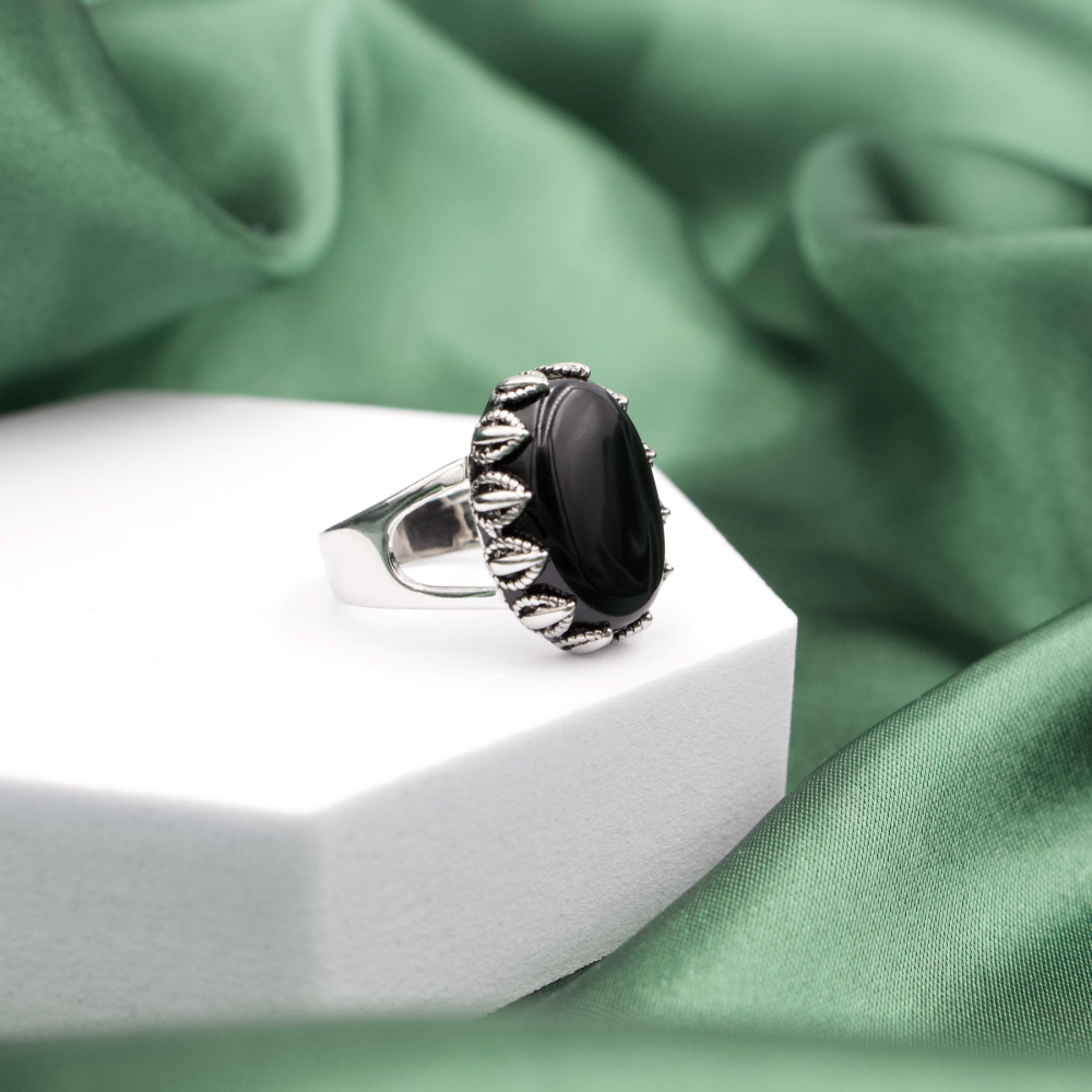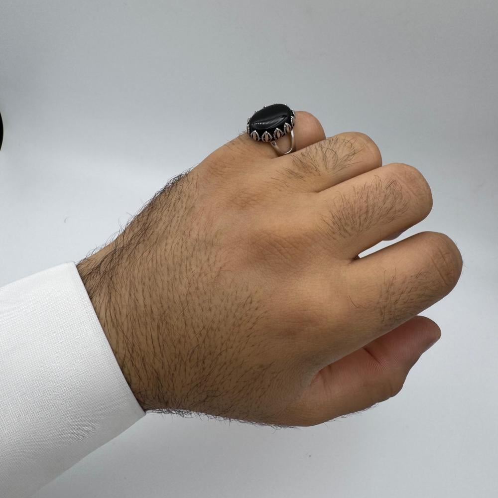 خاتم فضة رجالي عيار 925 بحجر الأونيكس الأسود الفاخر