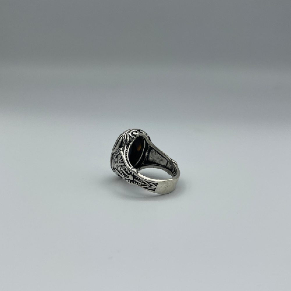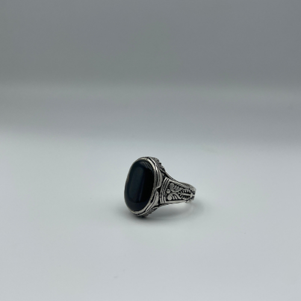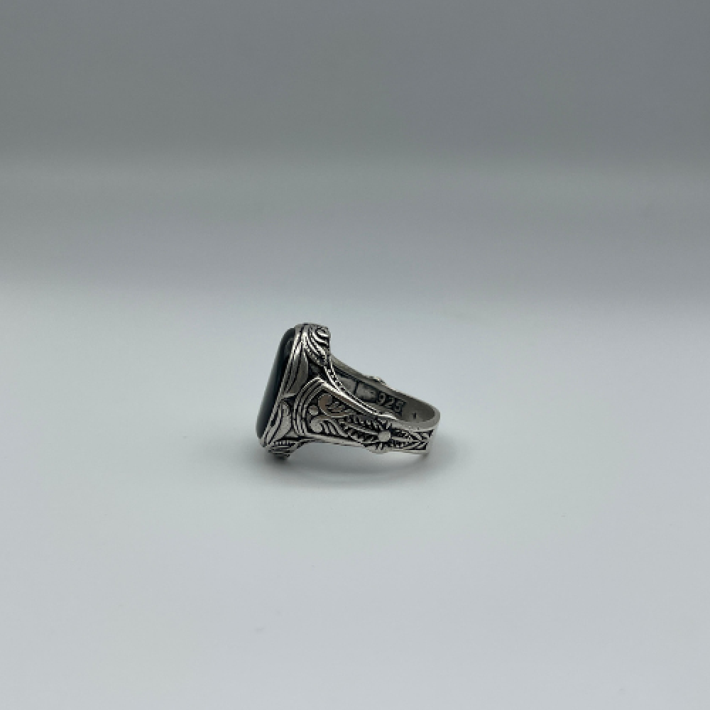 خاتم فضة رجالي متوج بالعقيق اليمني عيار 925 (بكيلي)