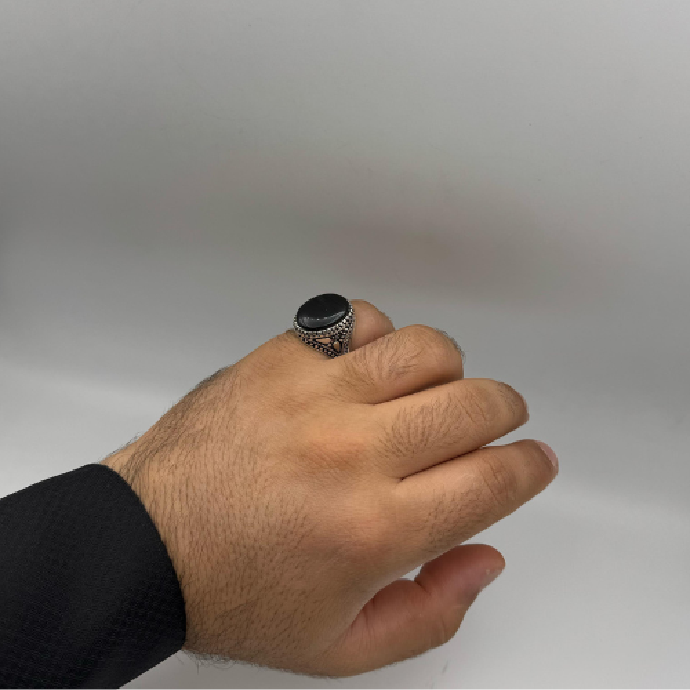 خاتم فضة عيار925 متوج بالعقيق الأسود اليماني