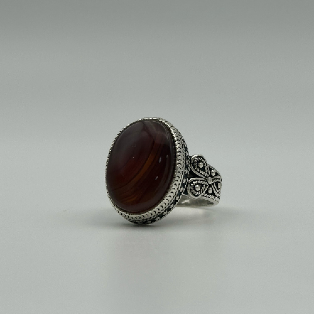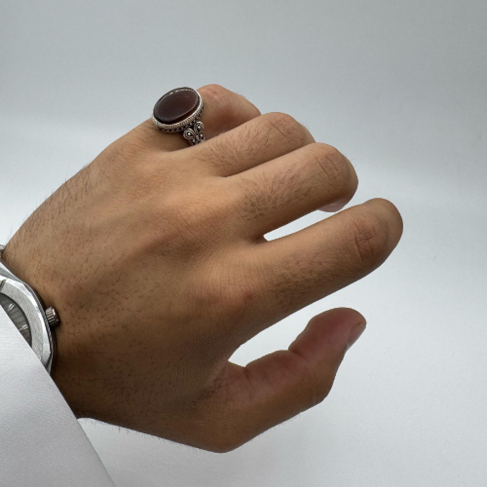 خاتم نجراني فضة عيار 925 مزين بحجر العقيق الكبدي الطبيعي