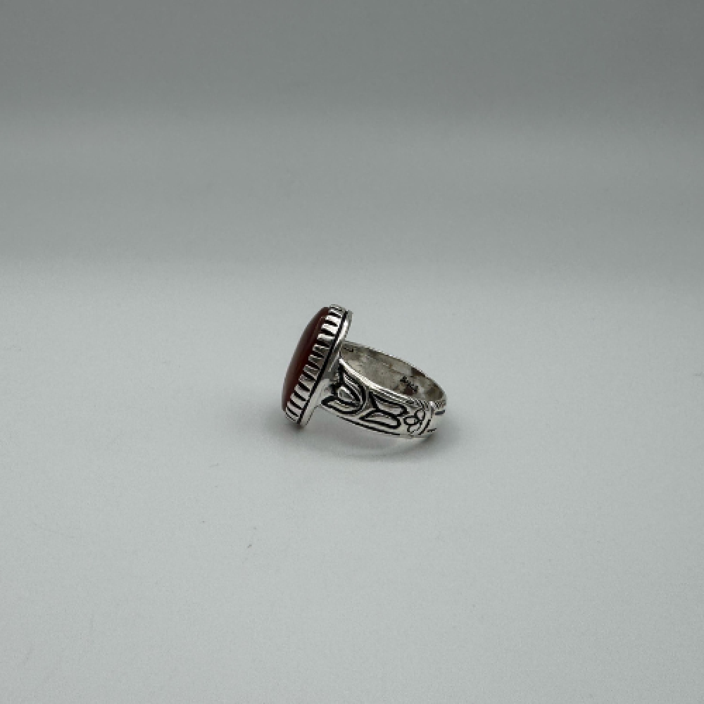 خاتم فضة عيار925 متوج بالعقيق الأحمر اليماني