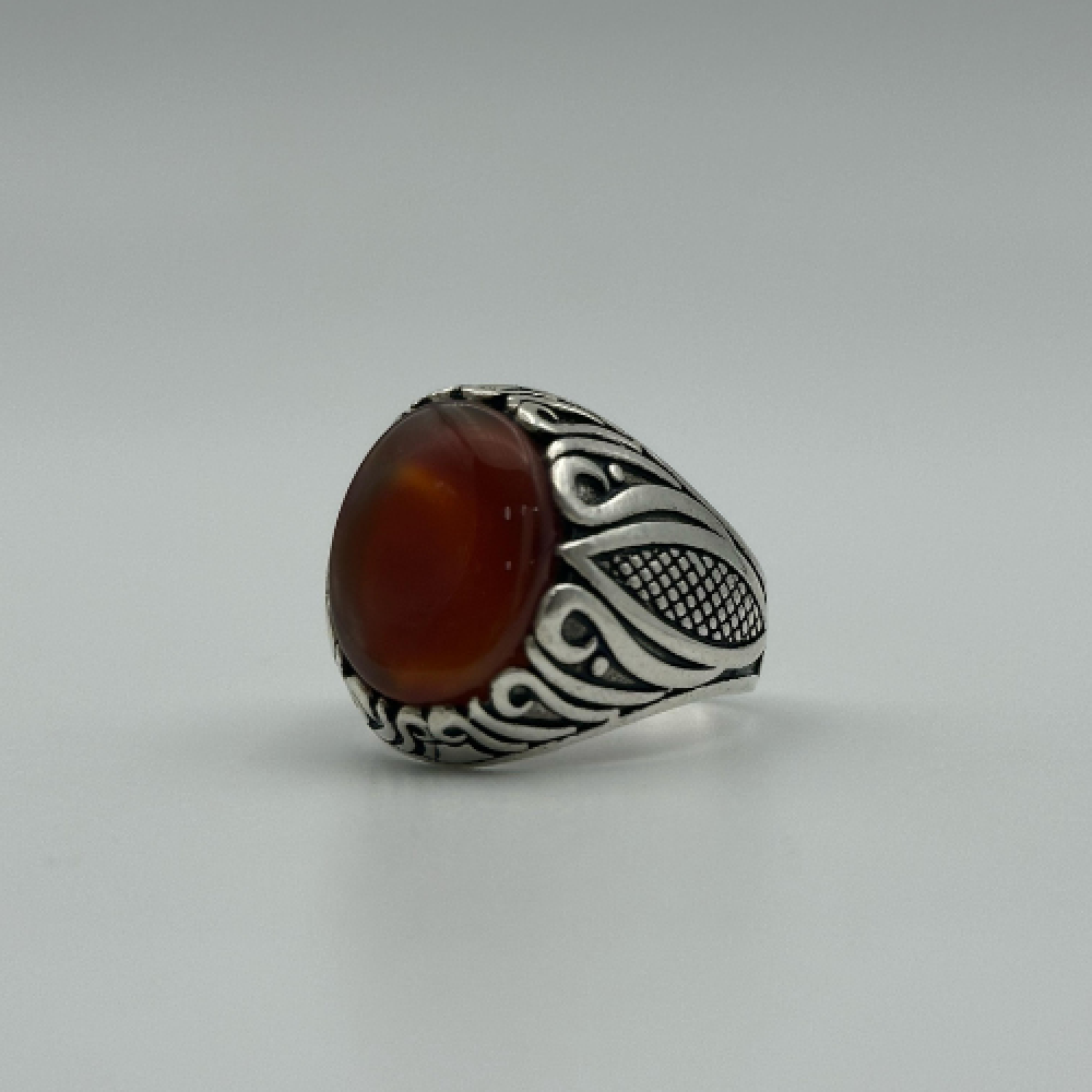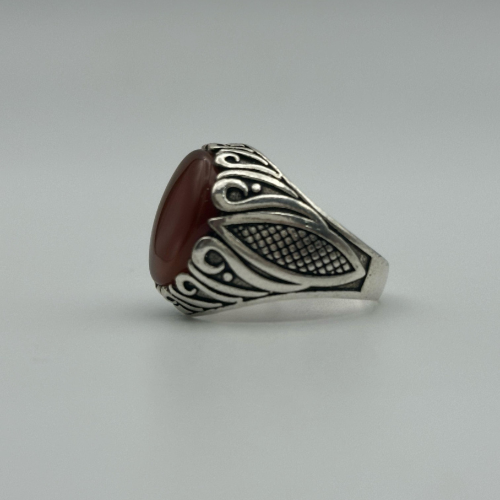 خاتم فضة نجراني راقي عيار 925 بحجر عقيق كبدي أصيل