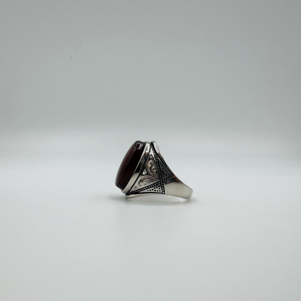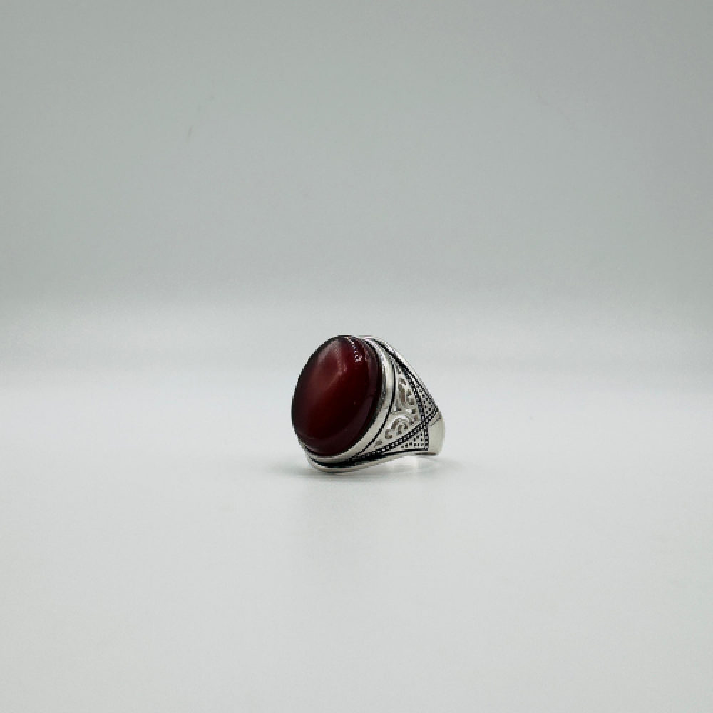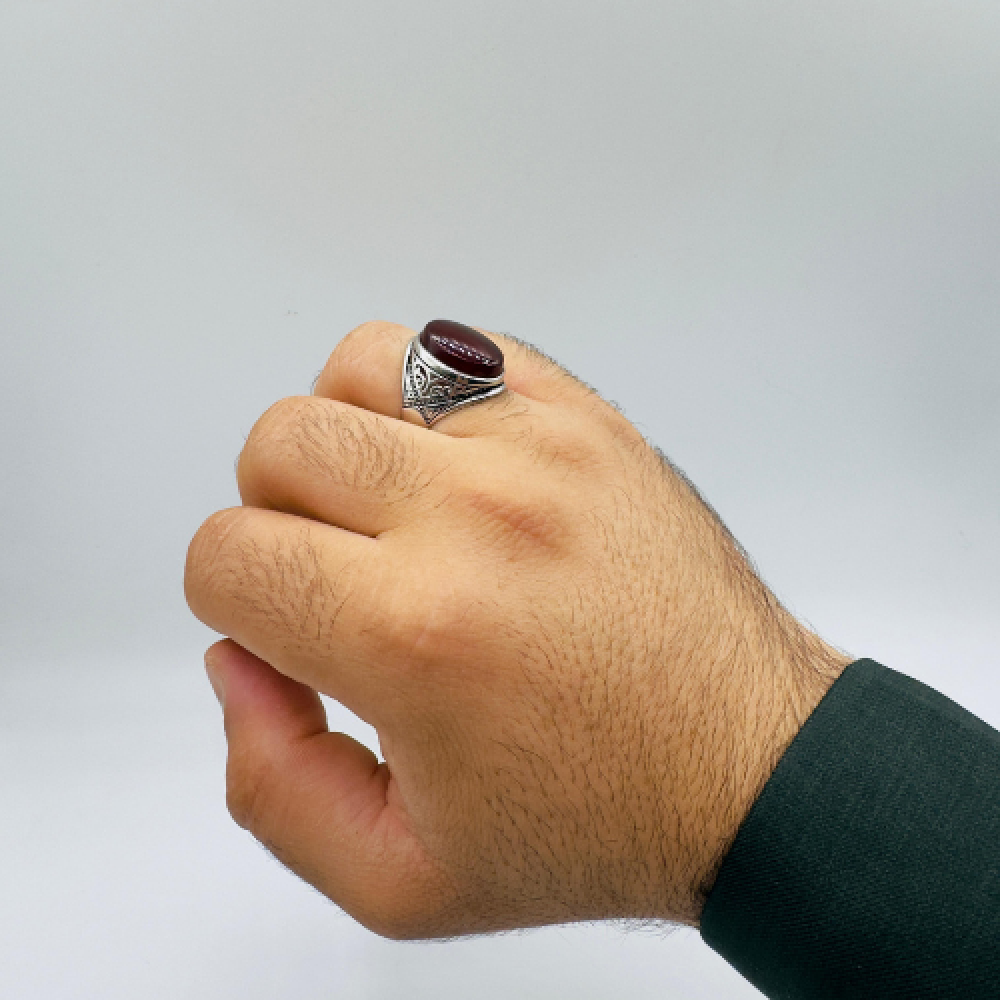 خاتم أنيق من الفضة الخالصة عيار 925، يزينه حجر العقيق البرازيلي الكرزي الفاخر بلونه العميق الذي يضفي لمسة من الفخامة والهيبة على إطلالتك. تصميم متقن يجمع بين الأصالة والجاذبية، ليكون خيارًا مثاليًا للرجال الباحثين عن التميز في تفاصيلهم.